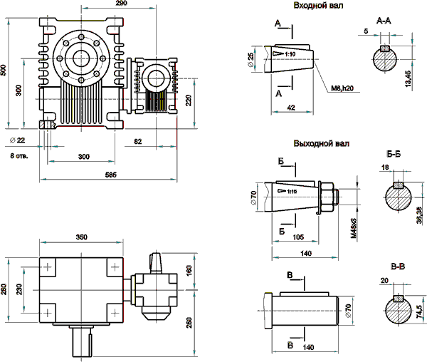 Габаритные и присоединительные размеры редуктора Ч2-160: