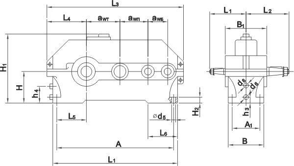ПРИМЕР УСЛОВНОГО ОБОЗНАЧЕНИЯ ПРИ ЗАКАЗЕРедуктор 1Ц3У-200-160-12K У2, где:цилиндрический трехступенчатый редуктор с межосевым расстоянием тихоходной ступени 200 мм, номинальным передаточным числом 160, вариантом сборки 12, коническим концом тихоходного вала K, климатическим исполнением У и категорией размещения 2.