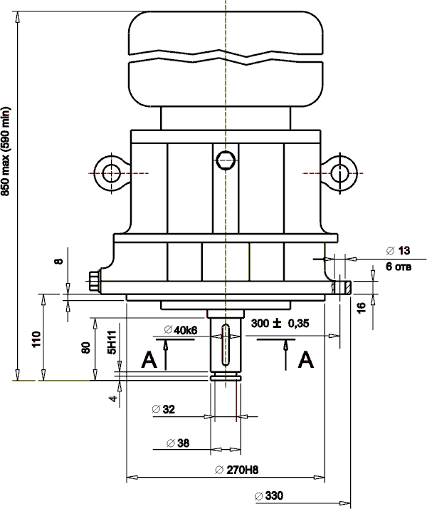 ВК-вертикальное с опорным фланцем, выходным валом вниз и кольцевой канавкой на нём.