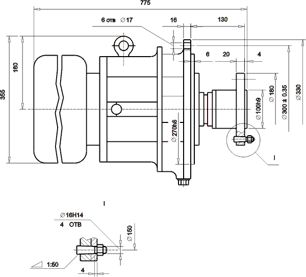 Ф-2П - горизонтальное, с выходным валом в виде фланцевой полумуфтыс встроенным зубчатым компенсатором.